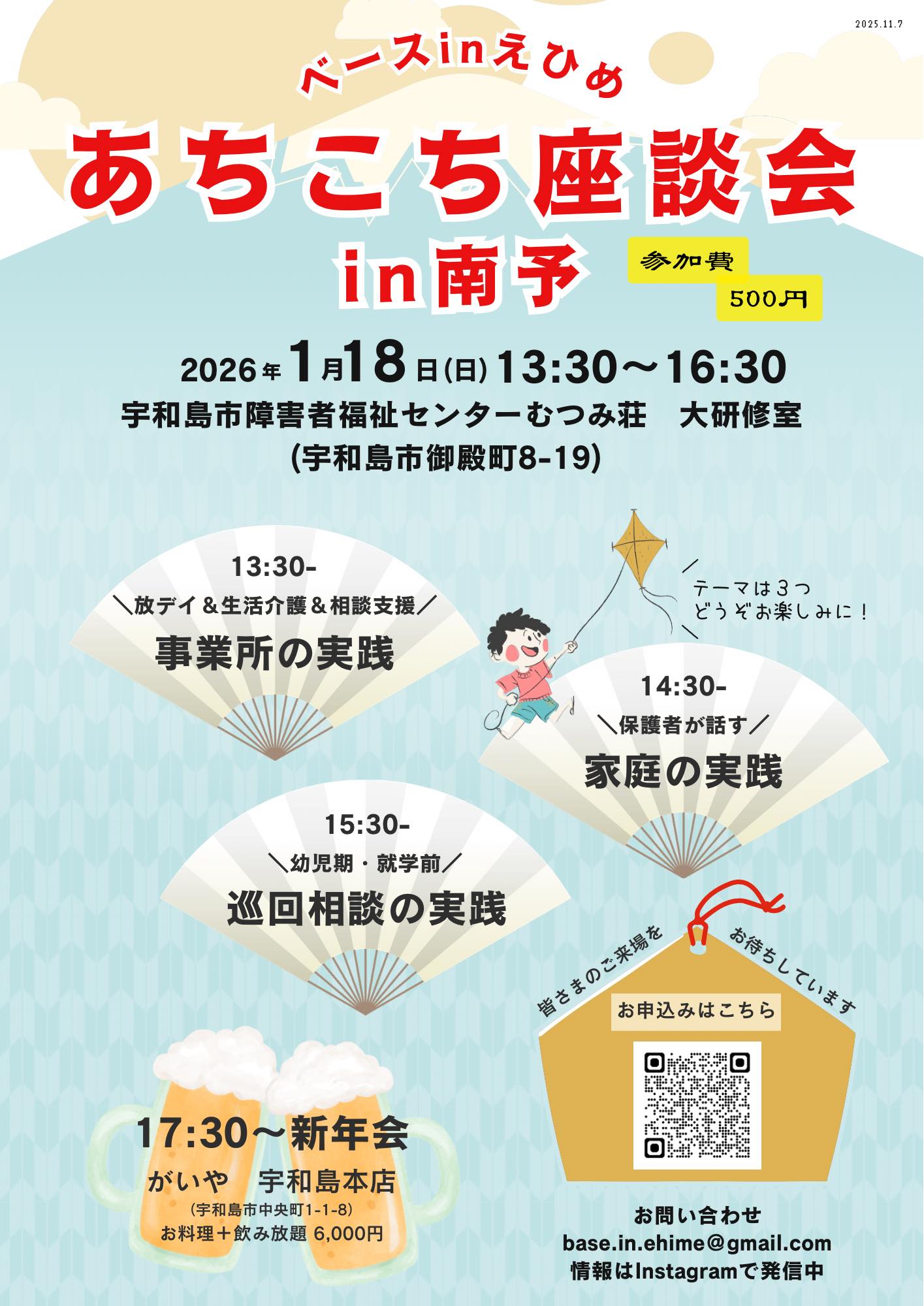 各文字をクリックするとチラシをダウンロードできますのでぜひご覧くださいね!(あちこち座談会については2026年度も開催いたします!広報開始をお待ちください♪)